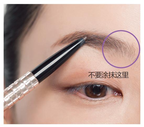 2.从眉毛下部开始描画,就不容易画出平坦的老气眉毛了